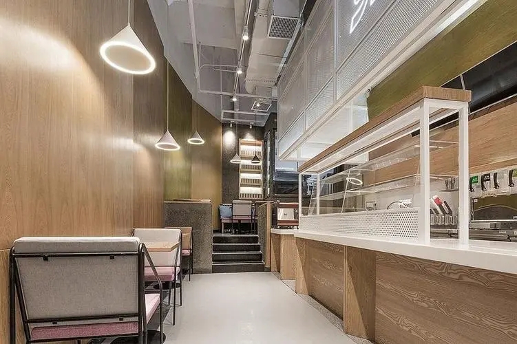 在材料的選擇上,要注意材質的對比,使材質與餐廳的特色相協調,配合藝術風格。同時,餐廳的質感設計材料會帶給人不同的心理感受,如石材給人以簡約和厚重感,不銹鋼給人一種干凈明亮的時代感,木材給人一種溫暖的感受、親密,有機透光材料它帶來了明亮的視覺體驗。